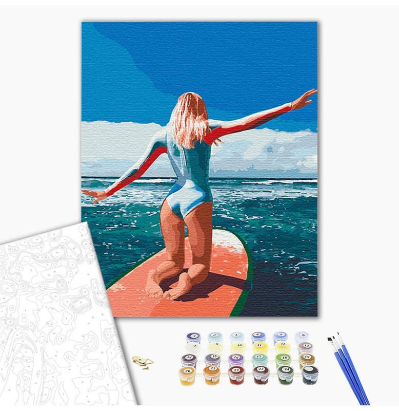 Картина за номерами "Серфінг на Балі" 40х50 см 10261-AC Мистецтво у Ваших Руках Перетворіть свій вільний час на творчу пригоду. Використовуйте професійні набори для живопису за номерами. Унікальне зображення Об'єднайте мистецтво та емоції з нашими дивовижними картинами. Зображення з людьми надають вашій роботі глибину та емоційну силу. Висока деталізація зображення змусить кожну крихітну деталь оживати на полотні. Якість матеріалів Наші набори включають акрилові фарби високої якості, які не тільки легко наносяться, але й зберігають яскраві кольори довгий час. Полотно виготовлене з міцних матеріалів, забезпечуючи довговічність вашого мистецтва. Пензлі в комплекті допоможуть вам створити акуратні штрихи і досягти професійних результатів. Картини Дизайн кожної картини підібраний таким чином, щоб вона була не тільки мистецтвом, а й візуальним натхненням . Кожна картина із зображенням людей передає унікальний сюжет і атмосферу, які дозволять вам поринути в історію, що розповідається на полотні. Відкрийте Ваш талант Навіть якщо ви новачок у живописі, з нашими покроковими інструкціями ви створите витвір мистецтва, яким пишатиметеся. Подарунок з душею Зануртеся в Мистецтво Сьогодні Дозвольте стати мистецтвом частиною вашого життя або вашої близької людини. Замовте картину за номерами вже сьогодні і перетворите моменти на мистецтво!