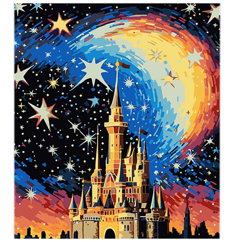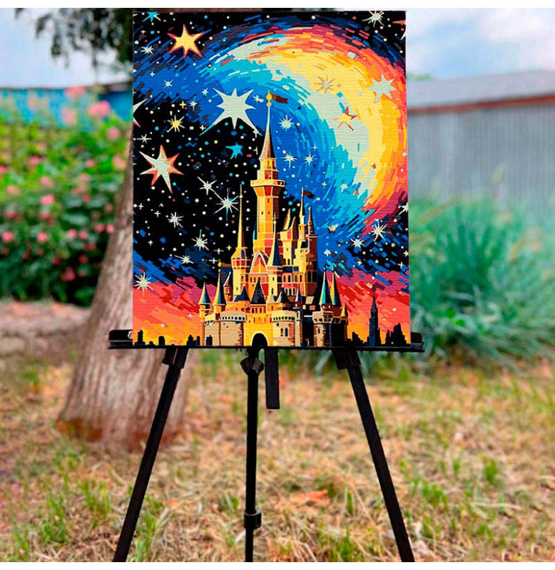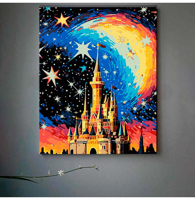 Картина за номерами Замок у сяйві мрій Strateg на чорному фоні 40х50 см AH1087