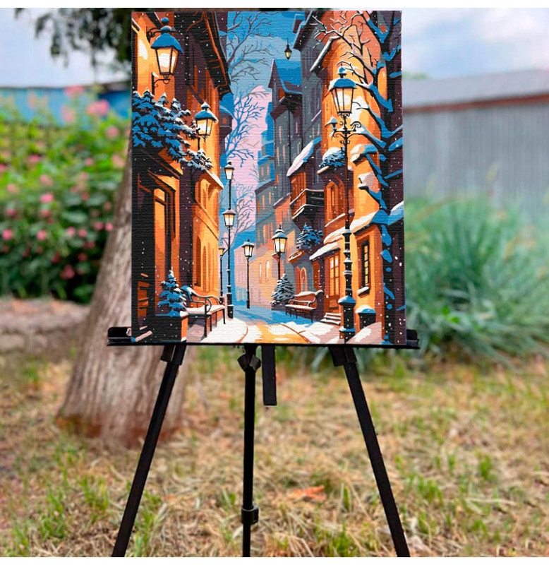 За допомогою картин за номерами, всі без винятку зможуть оволодіти мистецтвом живопису, відчути радість творчості і розкрити свої внутрішні таланти. Ці набори для творчості стануть хорошим подарунком незалежно від віку, статі чи професії. Вони слугують відмінним інструментом для розвитку дрібної моторики і творчого мислення у дітей. І найважливіше, картини за номерами наділені анти-стрес ефектом. До набору входить: 1. Полотно на дерев'яному підрамнику з нанесеними контурами та цифрами. Поєднання збалансованого складу полотна на бавовняній основі, спеціально розробленого акрилового грунту та механічна натяжна – гарантує пружність полотна та стійкість до провисання. 2. Комплект пензликів (3 шт.) різної товщини зроблені з еластичного нейлону. Такими пензликами дуже зручно замальовувати всі контури. 3. Акрилові фарби виготовлені з екологічно чистих матеріалів. Ми створюємо яскраві і барвисті кольори, стійкі до вицвітання. Кожен набір для малювання по номерам упакований в герметичну упаковку. Розмір картини: 40х50 см.