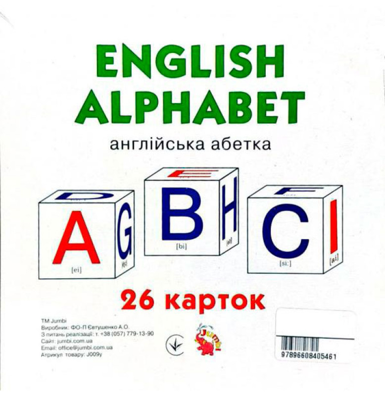 Картки великіі Англ. алфавіт 26 карток укр