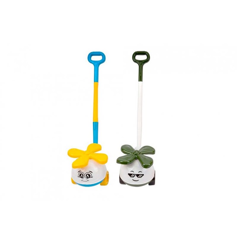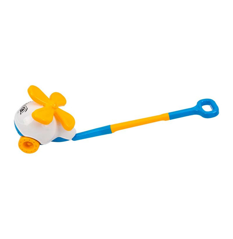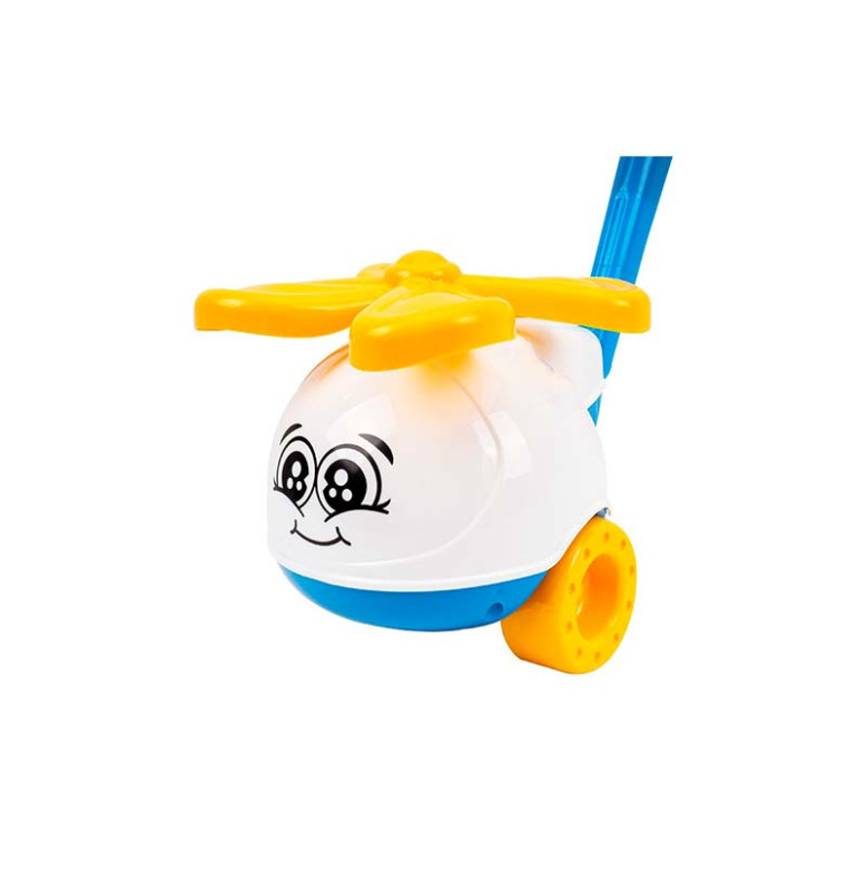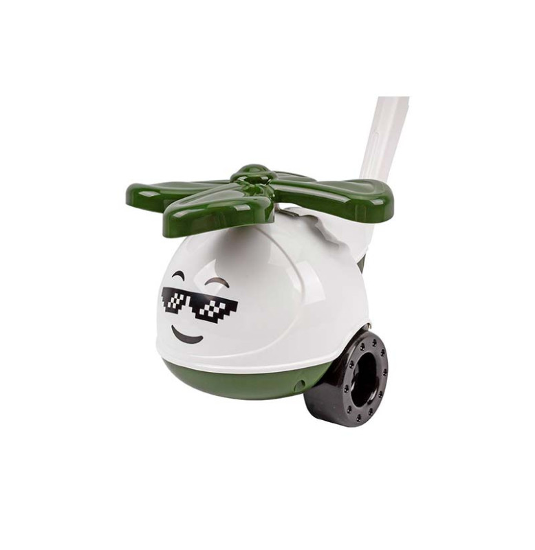 Каталка оснащена довгою ручкою (при потребі можна розкласти та зручно транспортувати чи зберігати), стійкою конструкцією, яка забезпечує зручне управління і комфортне тримання для маленьких ручок. Розкручуючи колеса каталки, дитина активує особливу функцію - сам гвинтокрил розпочинає свій політ!