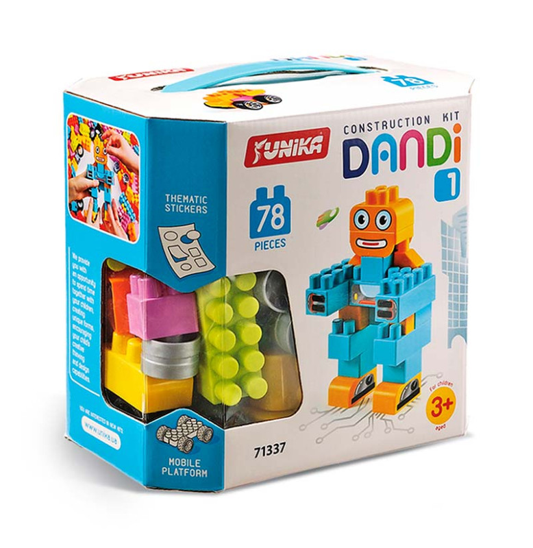 Конструктор Денді 1 78 елементів - конструктор складається з 78 великих деталей. За допомогою деталей з набору можна будувати будиночки, дороги, гаражі, тварин, роботів, монстрів, машинки та багато іншого.