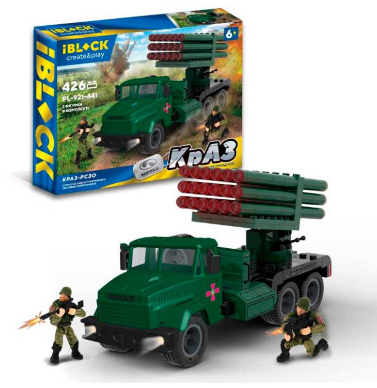 Конструктор IBLOCK арт. PL-921-441 (12шт) Армія, КрАЗ РСЗО 426дет., 2 фігур PL-921-441