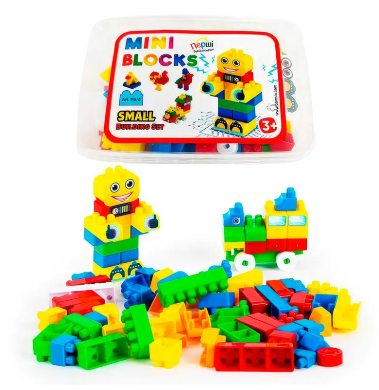 Конструктор "Mini Blocks №8" (85 деталей у коробці) Бамсік Товари орієнтовані на дітей від трьох років і є чудовим доповненням розвитку та дозвілля малюка, а саме: дитячі машинки, вантажівки, машинки спец. техніки, набори будівельних конструкторів, пірамідки, кубики, пісочні набори, набори дитячого посуду, кеглі для боулінгу та багато іншого для загального розвитку дітей.