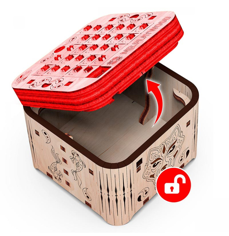 Ця дерев'яна скринька — поєднання витонченого дизайну та старовинної інженерії: прихований механічний замок відкриває секретну нішу лише тим, хто розгадає послідовність рухів. Ідеальний варіант для тих, хто цінує тактильні і розумові виклики.