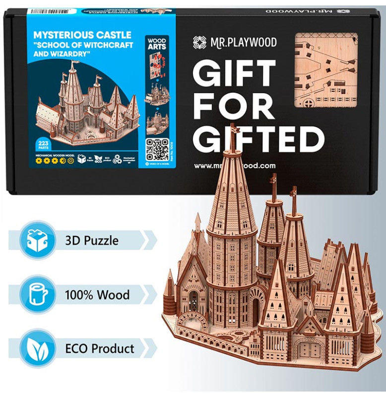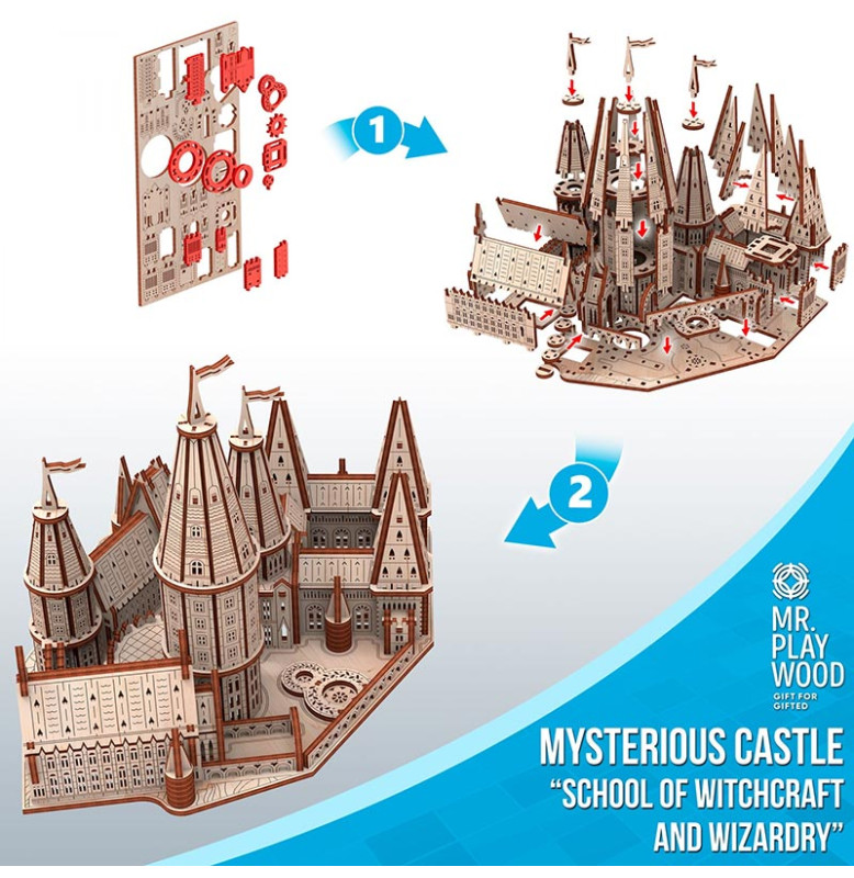 Mr.Playwood Таємничий замок "Школа чаклунства" — механічний дерев'яний конструктор