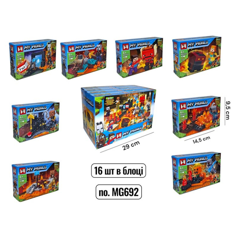 My World незер блоковий пластиковий — яскравий та продуманий конструктор, що відкриває дітям світ творчості та інженерної думки. Легко збирається й розбирається, дозволяючи реалізувати безліч ідей та сюжетів під час гри.