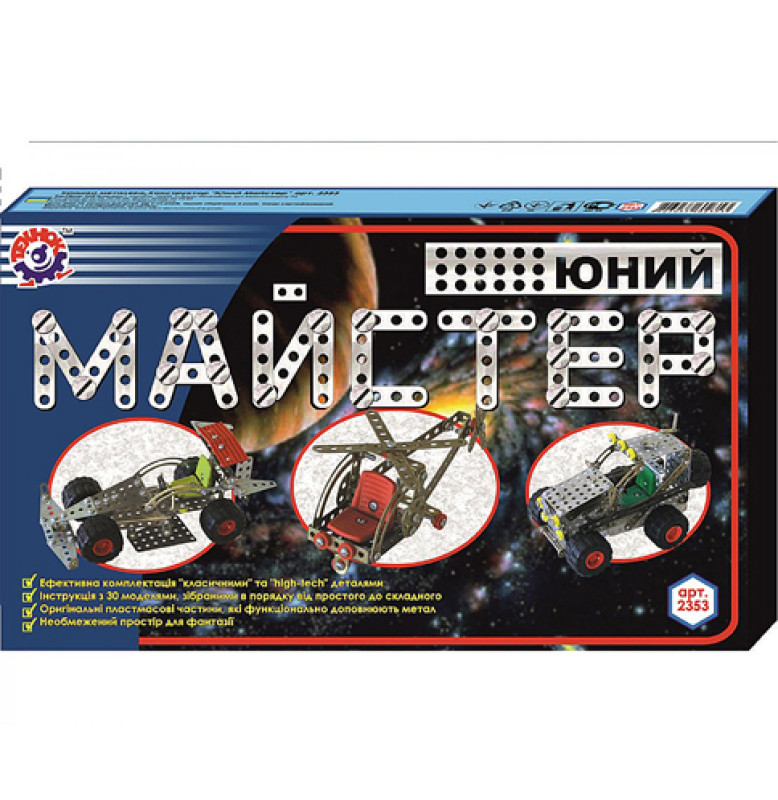Конструктор металевий "Майстер" упакований у коробці. За допомогою іграшки конструктор дитина зможе змайструвати автомобіль, військовий або цивільний транспорт.