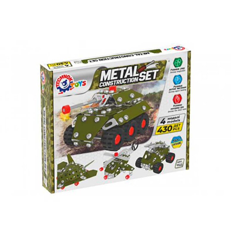 Металевий конструктор складається з 430 різноманітних деталей, з яких можна одночасно зібрати такі моделі: