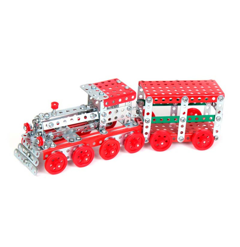 Головна перевага конструктора – різноманітна комплектація: різнокольорові металеві та пластикові елементи (колеса, пластини, кутники, гвинти та гайки), які дитина легко з’єднує самостійно. Крім того, у наборі є необхідні інструменти – викрутка та ключі, що значно полегшують процес складання.