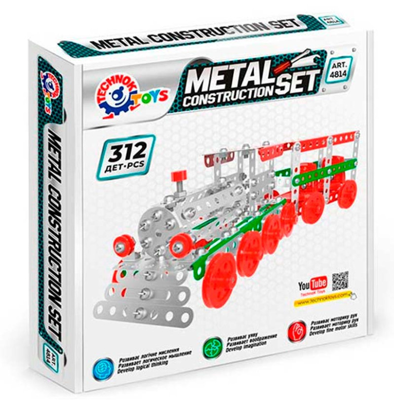Металевий конструктор «Потяг ТехноК» – це набір із 312 деталей для створення цікавої моделі локомотива з вагончиком.