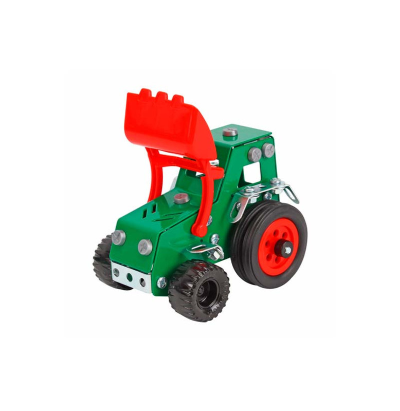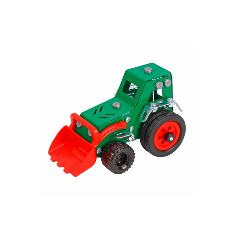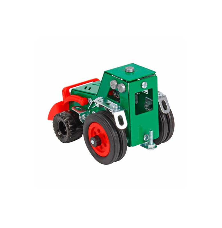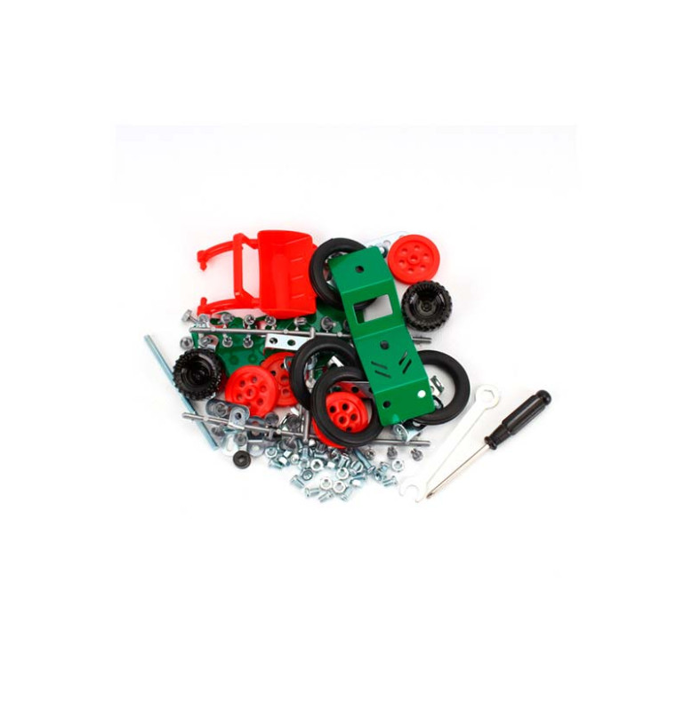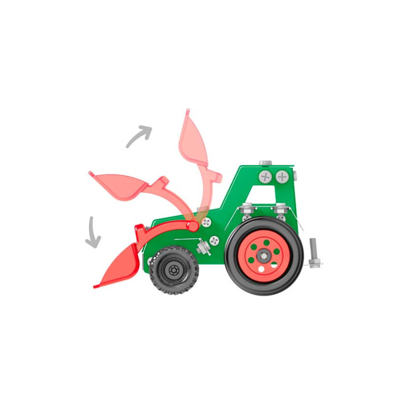 У наборі 140 деталей, виготовлених з міцного металу та яскравого пластику. Покрокова кольорова інструкція допоможе легко та із задоволенням зібрати реалістичну модель трактора, а сам процес збірки подарує безліч позитивних емоцій.