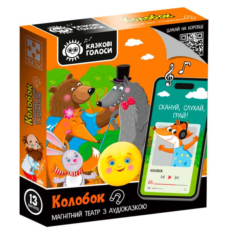 «Колобок, колобок, я тебе з’їм!» — знайома з дитинства фраза з улюбленої народної казки тепер оживає у форматі магнітного театру з аудіоказкою від Vladi Toys.