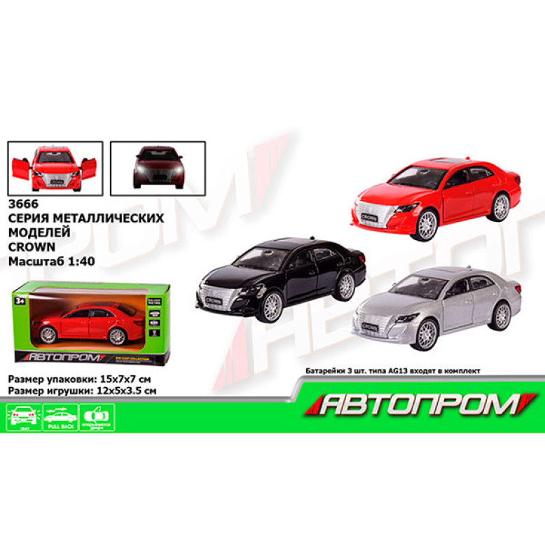 Машина метал "АВТОПРОМ",1:32-36,3 кольори, батар., світло, вiдкр.дверi, в кор.