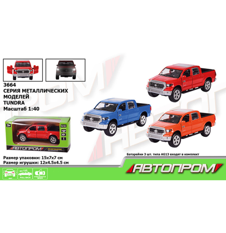 Машина металл 3664 (96шт/2) "АВТОПРОМ",1:32-36,3 цвета, батар., свет, откр.двери, в кор. 15*6,7*7см