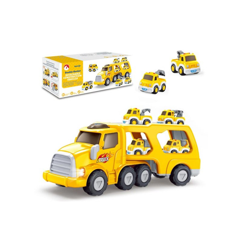 Яскрава та захоплива іграшка, яка поєднує простий інерційний механізм із реалістичними звуковими та світловими ефектами. Ідеальна для активних ігор, вона стимулює уяву та рольові сценарії, дозволяє створювати змагання та перевезення іграшкових автомобілів.