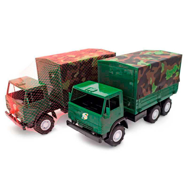 Автомобіль х2 тентований, військовий (арт. 884), точна копія транспортного засобу збройних сил країн НАТО. Дітей приваблює захисний камуфляж, тентований кузов і відмінні ходові якості іграшки. Модель не має необроблених поверхонь, гострих кутів та інших частин, що становлять загрозу для дитини.