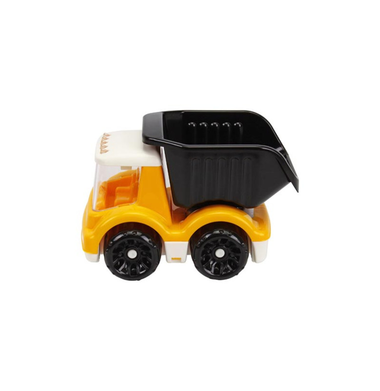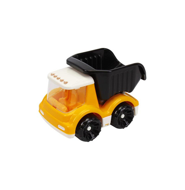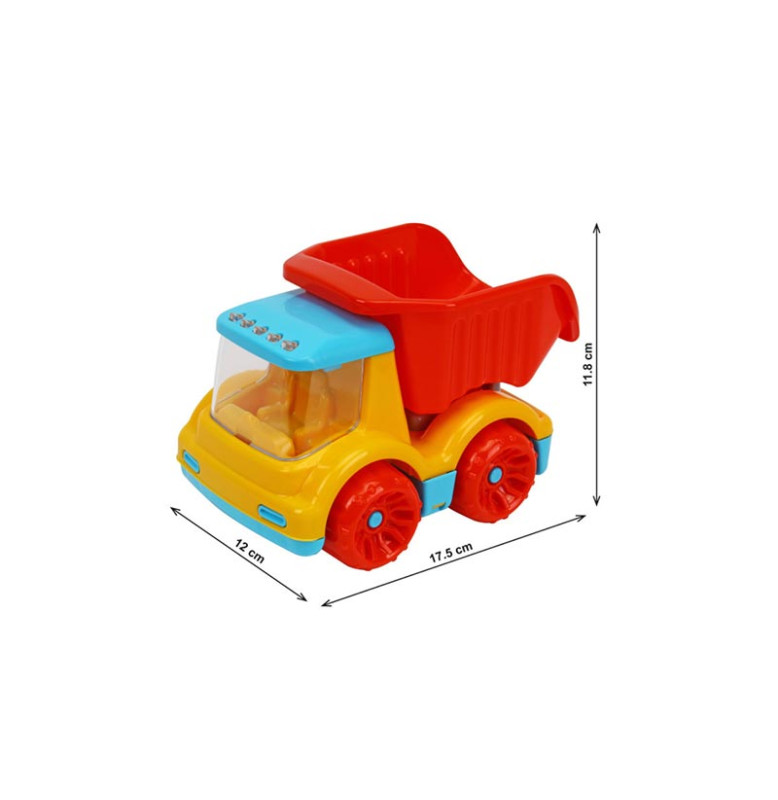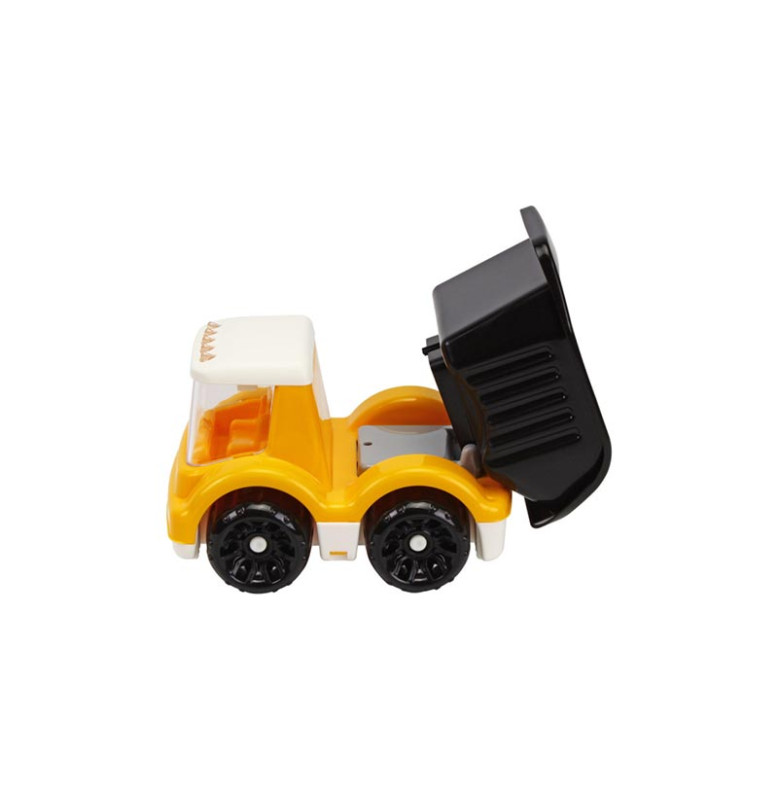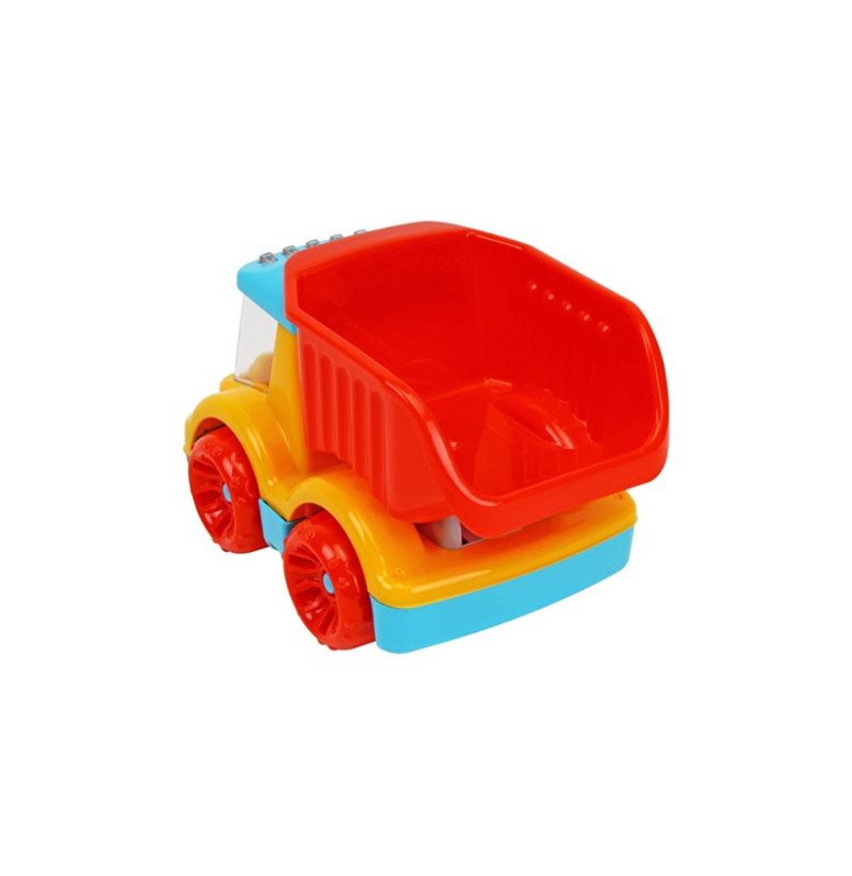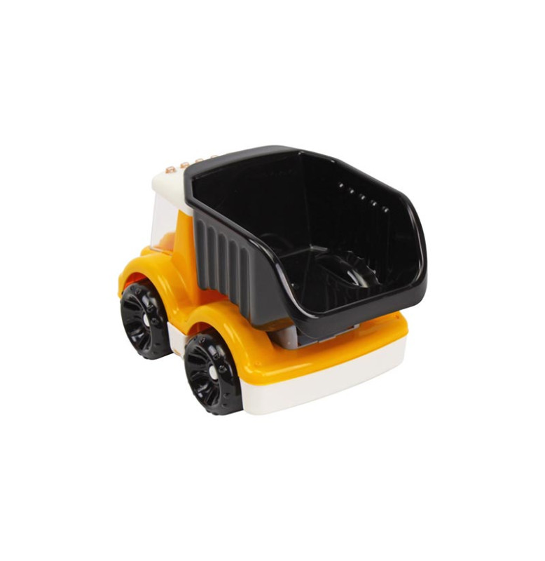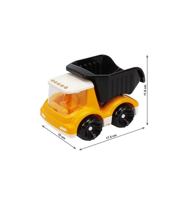 - Реалістичний дизайн: перекидний кузов, як у справжнього самоскида, та прозора кабіна з «габаритними ліхтарями» на даху повністю занурюють дитину у світ будівництва.