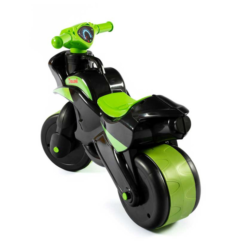 Дизайн спортивного мотоцикла: Яркий черно-зеленый дизайн в стиле спортивного мотоцикла привлекает внимание маленьких гонщиков.