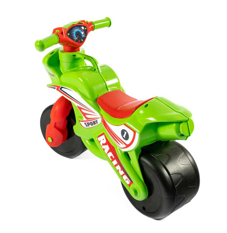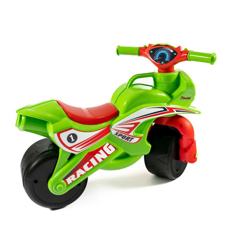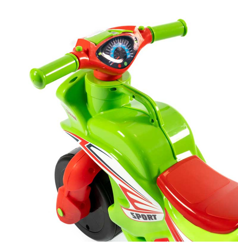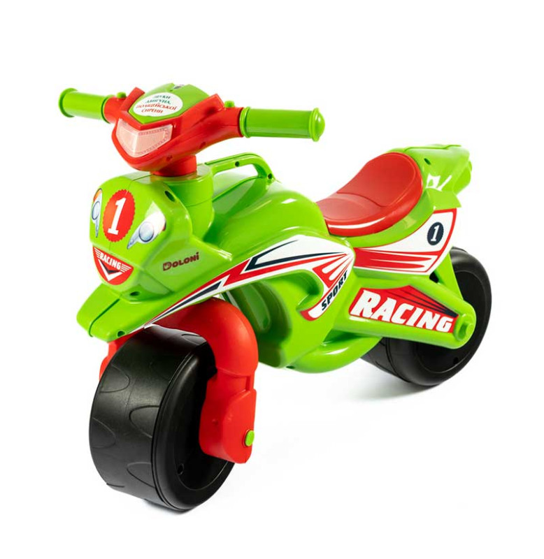 Предназначен для детей от 2 до 5 лет. Развивает воображение и физические способности ребенка. Помимо оригинального дизайна, байка может издавать световые и звуковые эффекты.