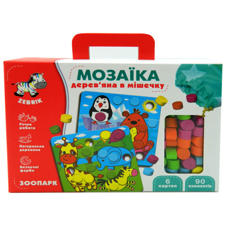 Мозаїка дерев''яна Зоопарк - гра посприяє сортуванню мозаїки за кольором і підрахунку їхньої кількості, а також вивченню мешканців зоопарку.