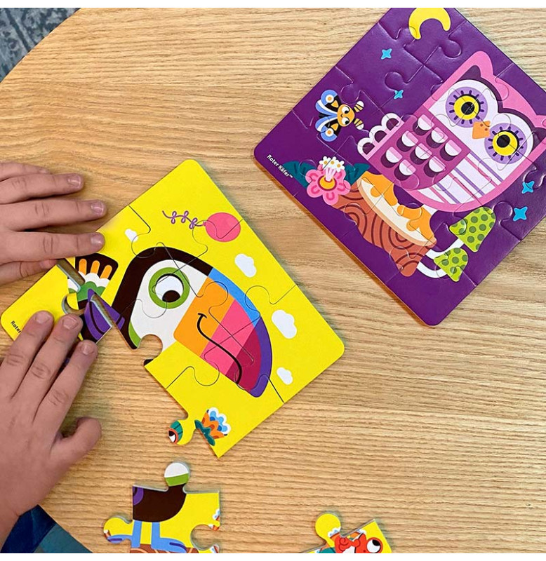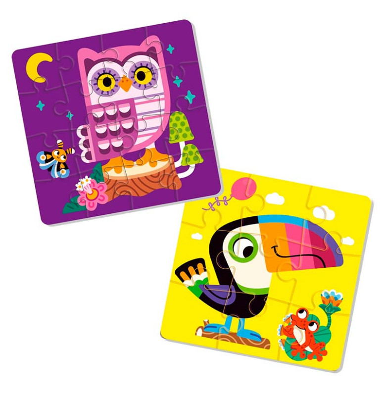 Познакомьтесь с добрыми героями — Туканом и Совой! Ребёнок с радостью будет собирать картинки из мягких удобных элементов.