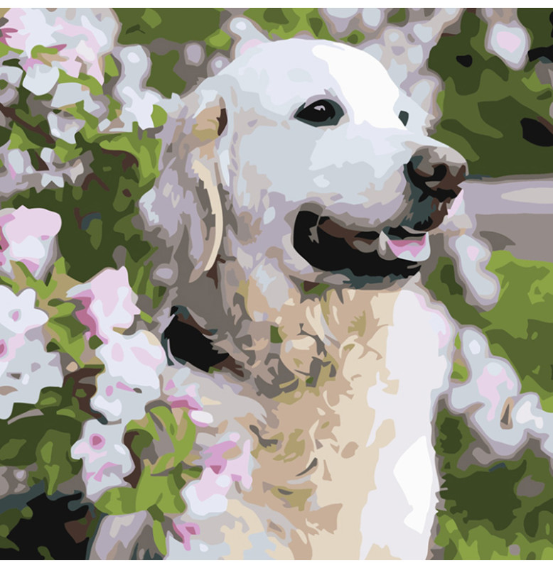 Набір для розпису по номерах Лабрадор у квітах Strateg розміром 40х40 см (SK037)