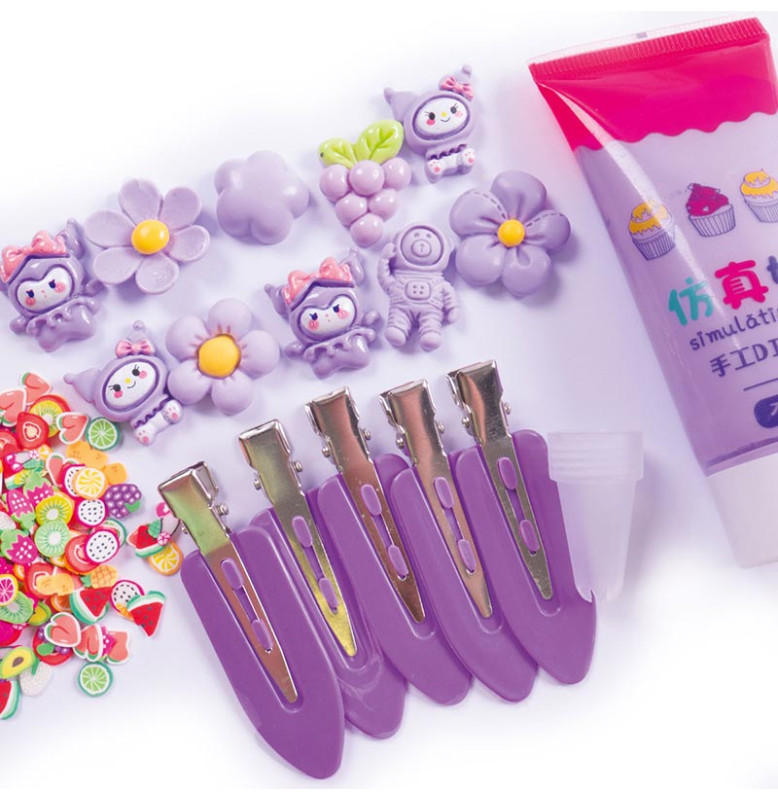 Создавайте уникальные аксессуары своими руками — набор поможет легко превратить обычные заколки в стильные украшения с блеском и объемом. Он вдохновляет на неожиданные сочетания цветов и форм и делает процесс рукоделия приятным и увлекательным.