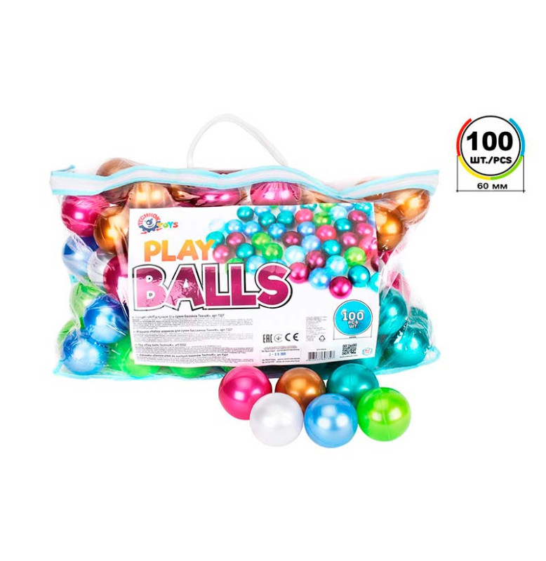 Іграшка виготовлена з безпечного пластику без запаху. У наборі кульки у кількості 100 шт розміром 60 мм. Пакування - сумка на блискавці, у якій їх також зручно переносити та зберігати. Для дітей від 2-х років.
