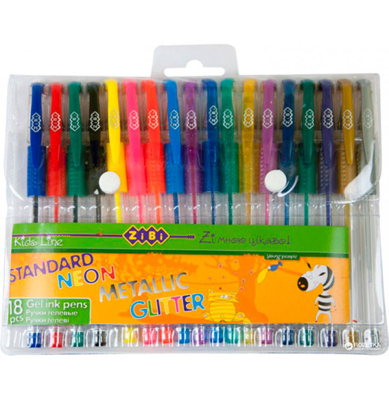 Набір з 18-ти гелевих ручок STANDARD+NEON+GLITTER+METALLIC