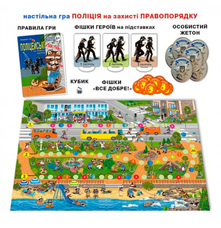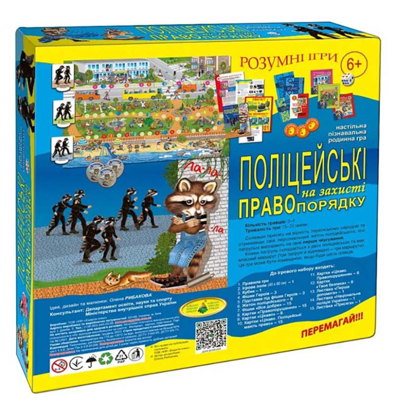 Настільна командна гра ПОЛІЦЕЙСЬКІ НА ЗАХИСТІ ПРАВОПОРЯДКУ — авторська патріотична сімейна гра Олени Рибакової ідеально підійде для сімейного дозвілля та виховання дітей віком від 6 років.
