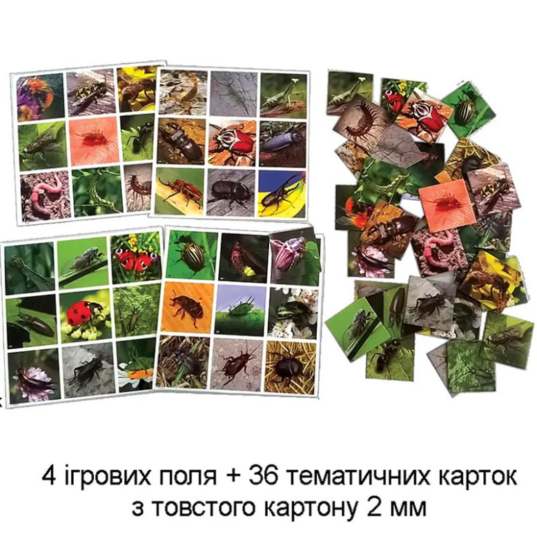 Настільна гра Супер ЛОТО Комахи - це інтелектуальна, навчальна гра за допомогою якої Ваш малюк зможе познайомитися з різними видами комах і вивчити їх.