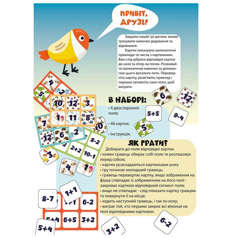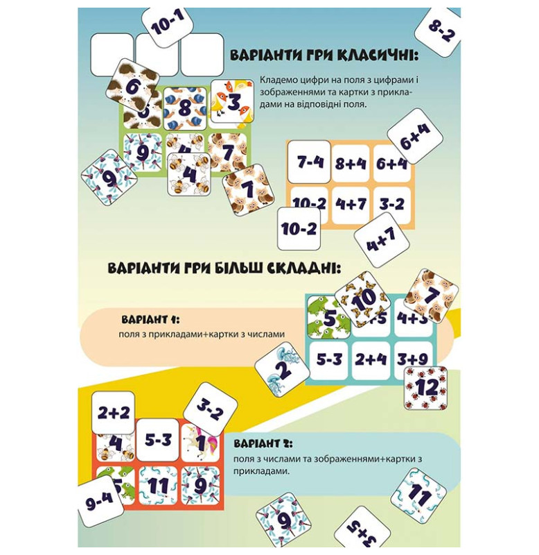 Ця гра перетворює знайомство з числами та логічними задачами на захопливу пригоду. Простий ігровий процес, яскраві картки та приємний дизайн стимулюють цікавість дитини до математики без зайвого формалізму.