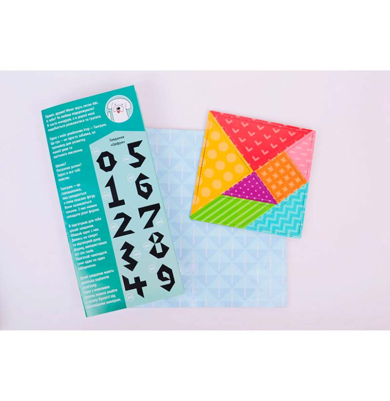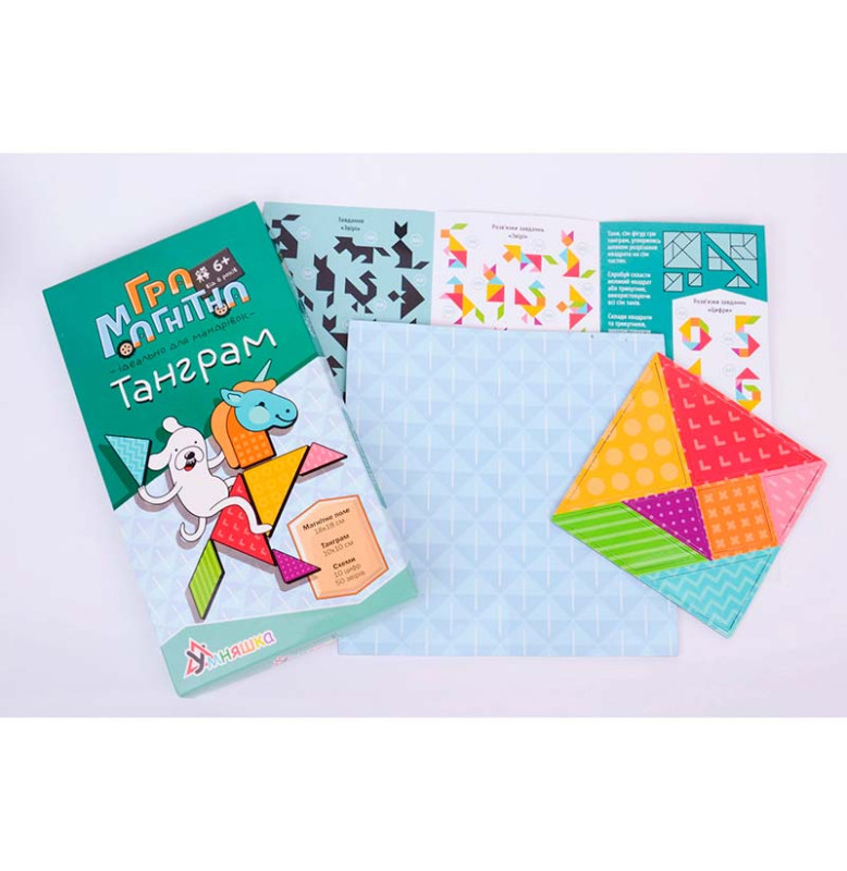 Комплект поставки | магнітне поле (20х20см), танграм (10х10см), схеми |