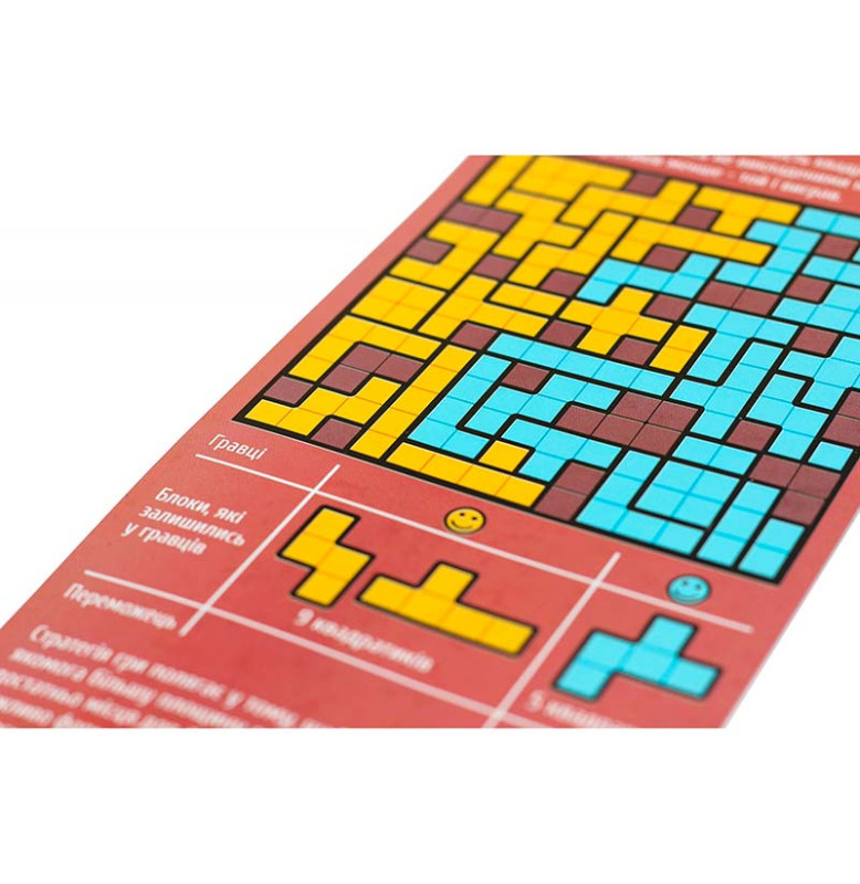 Захоплива дуель у стилі класичного тетрісу, але в компактному настільному форматі з магнітними фігурами. Гра дарує миттєвий азарт: викладайте фігури, блокуйте суперника та будуйте лінії, поки поле не заповниться.
