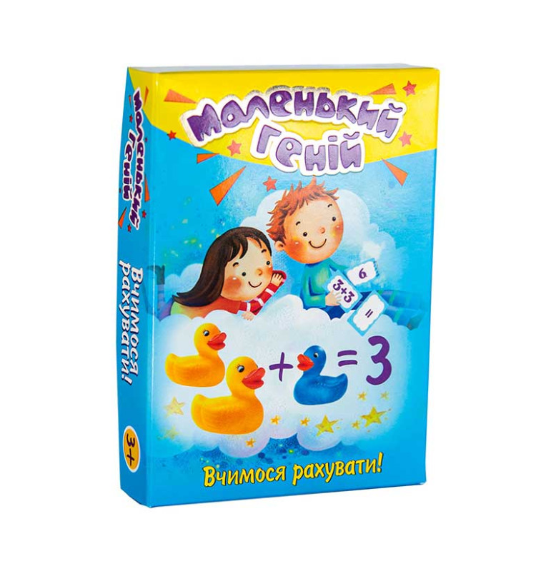 «Маленький геній» - навчальна гра для найменших. З трирічного віку можна починати активно розвивати математичні здібності дитини. Спочатку познайомте її з найпростішими основами - рахунок в межах 10. У цьому наборі є двосторонні картки з цифрами, прикладами, загадками і знаками. Все це допоможе легко освоїти і запам'.ятати матеріал в ігровій формі, а предмети, зображені на картках, розширять словниковий запас малюків. Такі ігри прекрасно розвивають логіку, уважність і вчать дітей мислити послідовно.