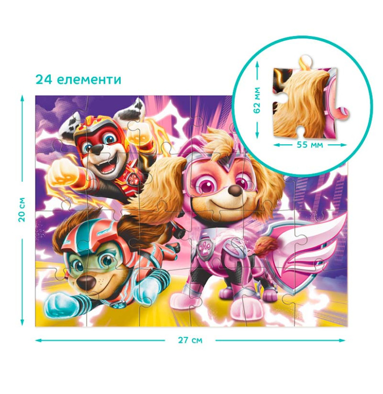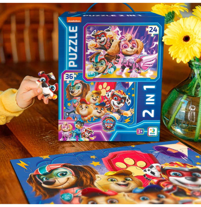 Пазл Dodo "Paw Patrol: Зберігаємо світ у безпеці" — це захопливий набір, який складається з двох пазлів: один на 24 елементи, а інший на 36 елементів. На яскравих ілюстраціях зображені улюблені герої — щенята з команди Paw Patrol, які готові до нових пригод та місій по рятуванню. Вони завжди готові прийти на допомогу і захистити світ від небезпек!