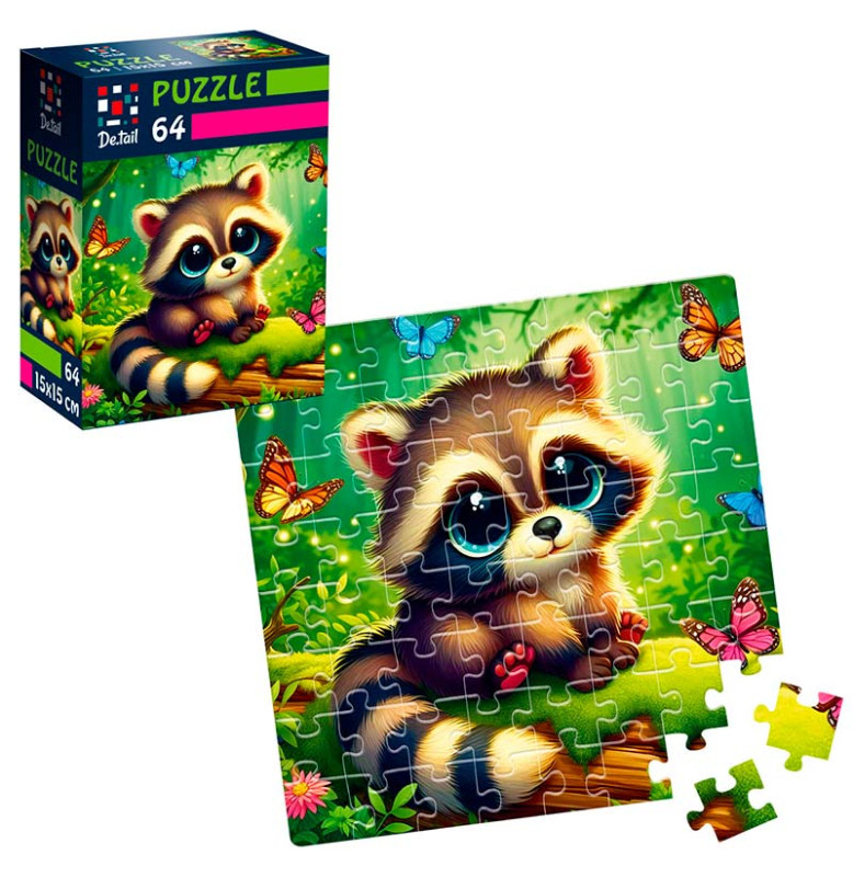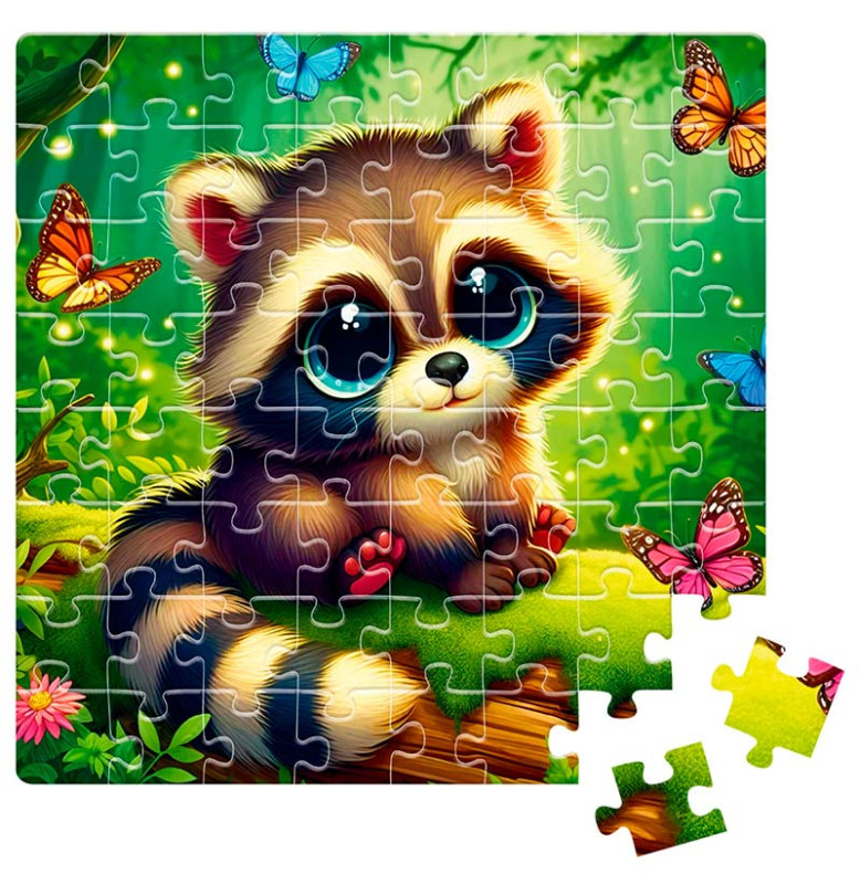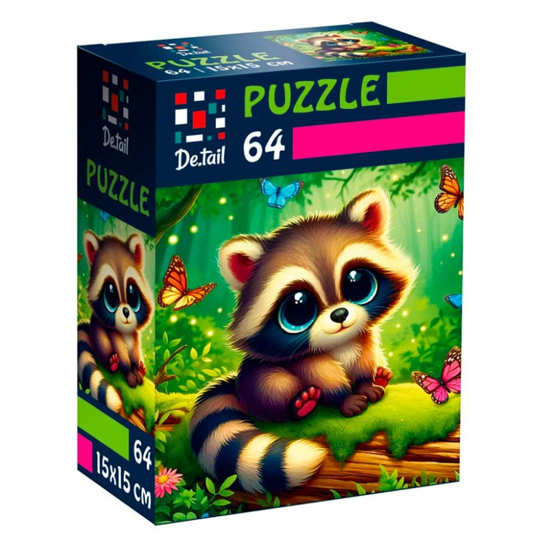 Ніжна ілюстрація з милим єнотом, що заглиблено спостерігає за химерними метеликами, створює атмосферу затишку й натхнення. Кожен фрагмент плавно поєднується, утворюючи яскраву картину, яка тішитиме око після складання.