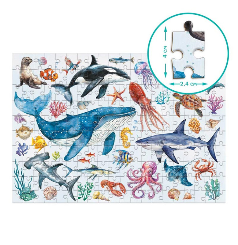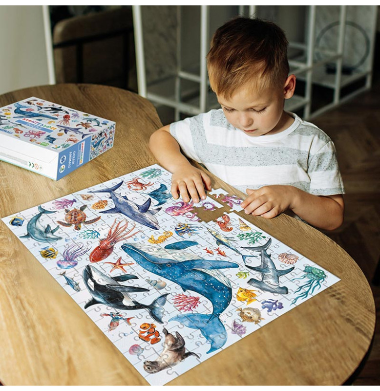 Чарівний пазл, виконаний у дусі Монтессорі, який запрошує дитину вивчати підводний світ через гру. Яскраві зображення морських мешканців розвивають уяву та інтерес до природи, а складання сприяє природному навчанню через практичну діяльність.