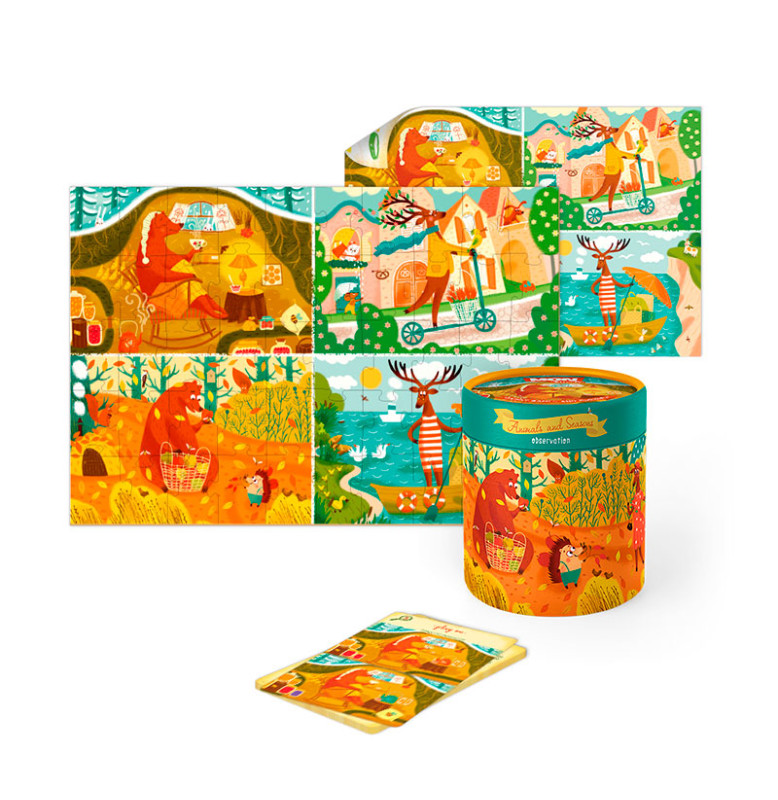 Пазл та гра Як звірі пори року зустрічали - це двосторонній обсерваційний пазл-гра. З одного боку пазла зображені звірі та пори року, з іншого - гра-лабіринт. Рекомендовано для дітей від 4 років. Деталі пазла великі, картон щільний. Комплектація: двосторонній пазл - 1 шт., 1 двосторонній постер - 1 шт., картки із завданнями - 10 шт.
