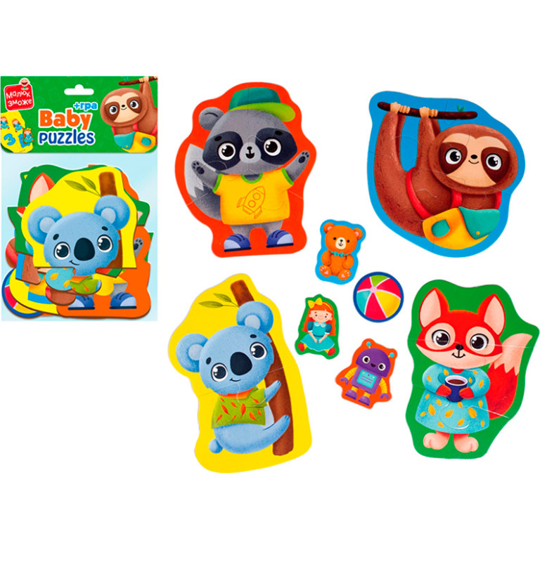 Пазли максі Vladi Toys картонні з грою Малюк Зможе «Тварини. Іграшки» VT172 VT1722-23