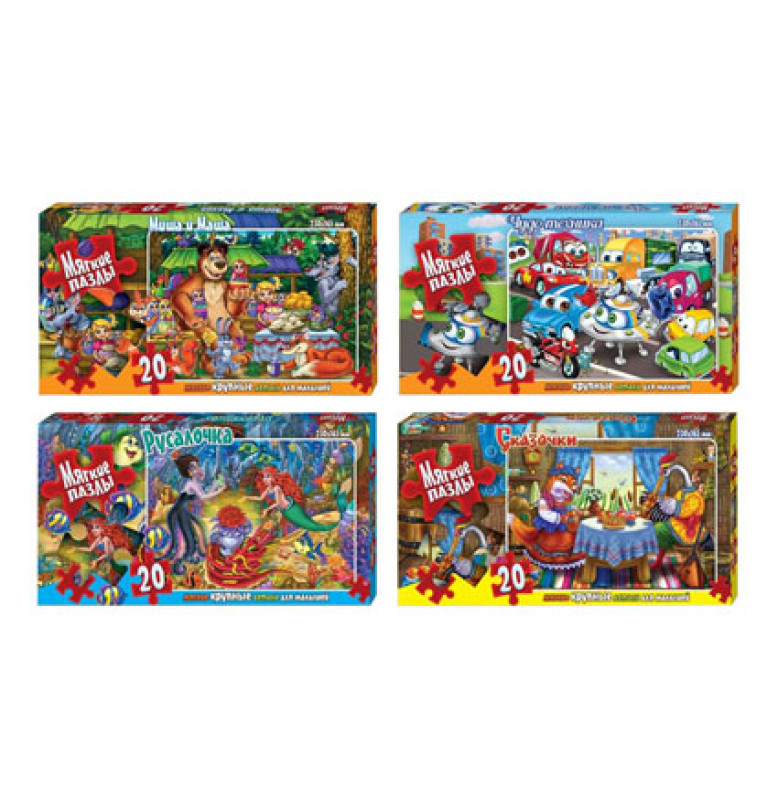 Пазли м''які асорті складаються з 20 великих елементів. Розмір: 23х16.5 см.