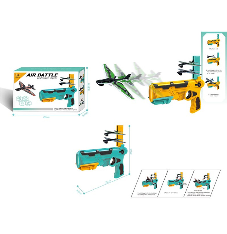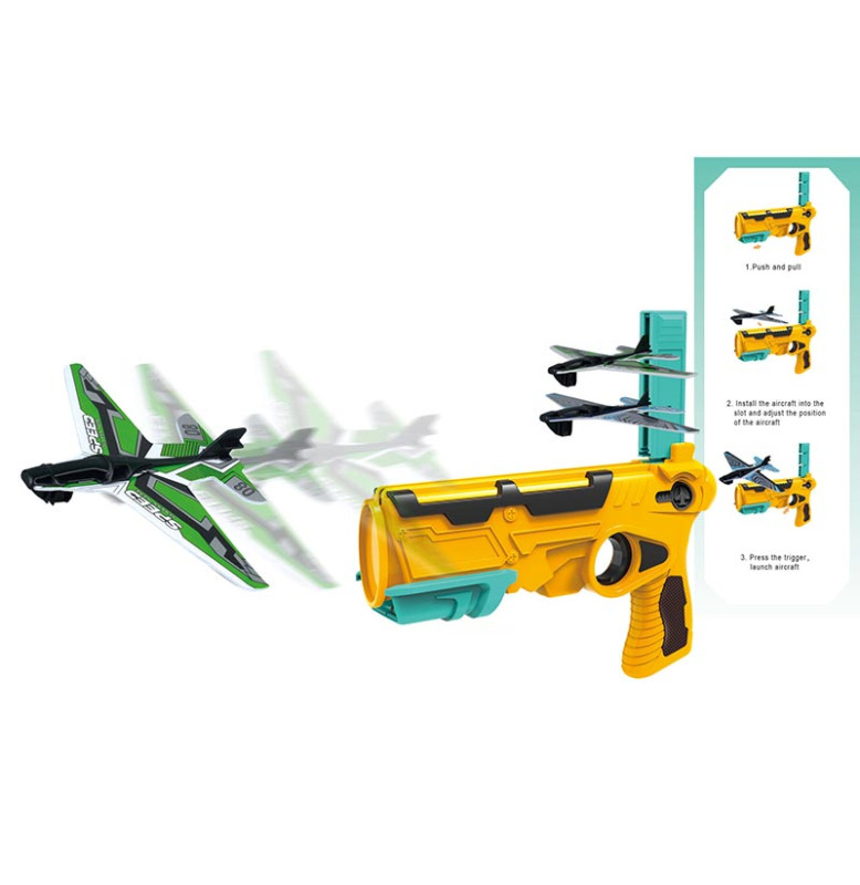 Яскрава іграшка, яка поєднує в собі простий механізм запуску та легкі планери для хвилюючих польотів. Натисни — і маленький літак мчить угору, відкриваючи простір для творчих ігор і змагань.