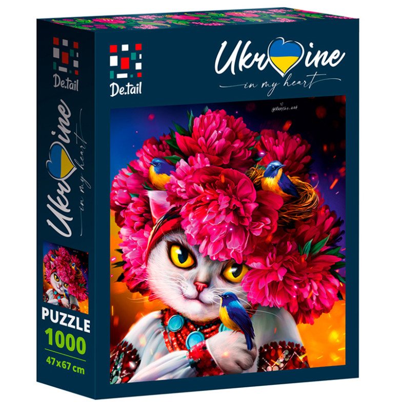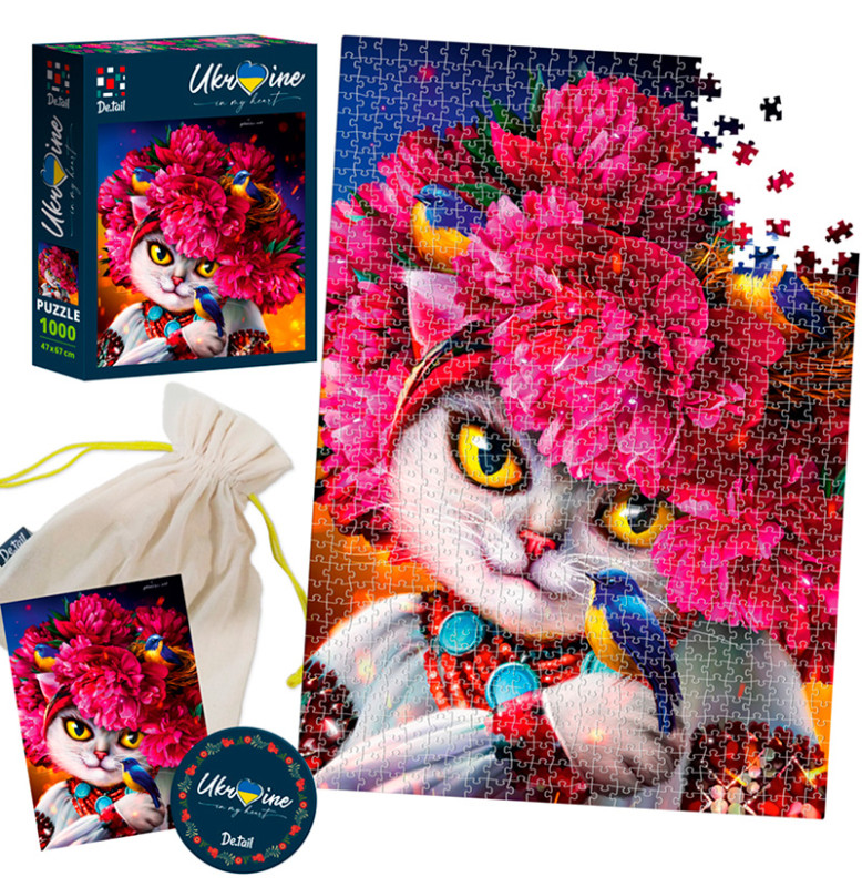 Пазл Vladi Toys De.tail "Білий кіт в рожевому вінку" - чудовий вибір для тих, хто любить творчість та прагне створити щось унікальне і прекрасне.