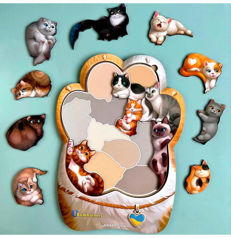 Вашi дiти обожнюють котиків? Тодi ця гра саме для Вас: 14 милих котикiв чекають зустрiчи з Вашим малюком. У наборi вкладиш-пiдказка, щоб дитина могла по тiнi шукати вiдповiдного котика. Коли дитина навчиться, то ускладнити завдання можна, знявши пiдказку.