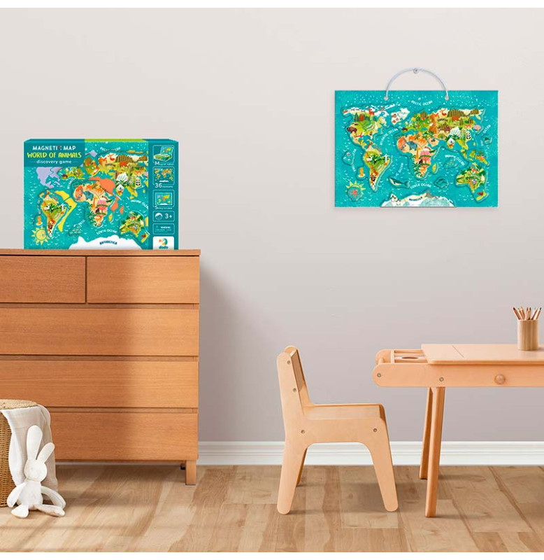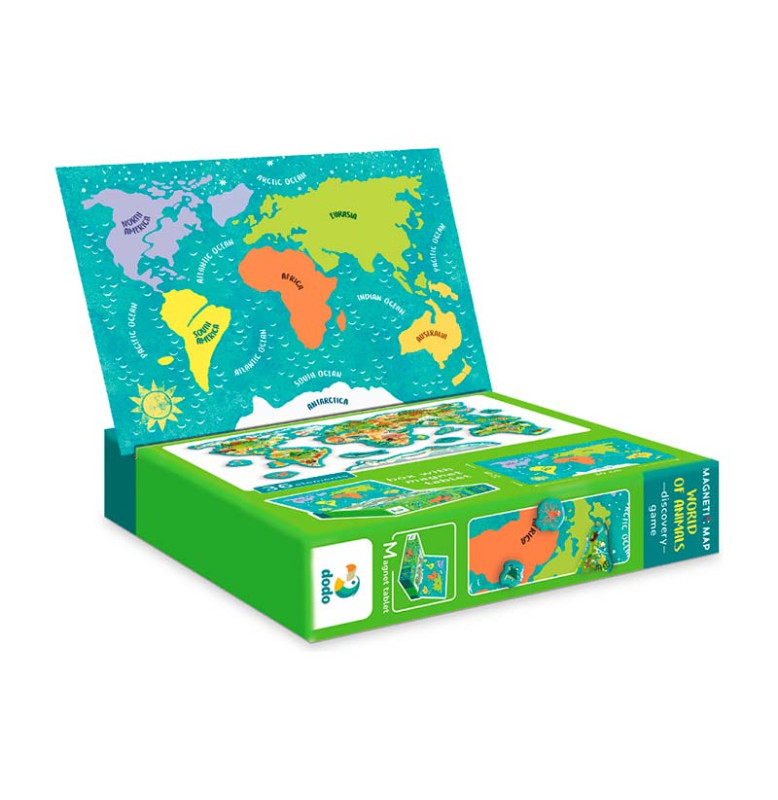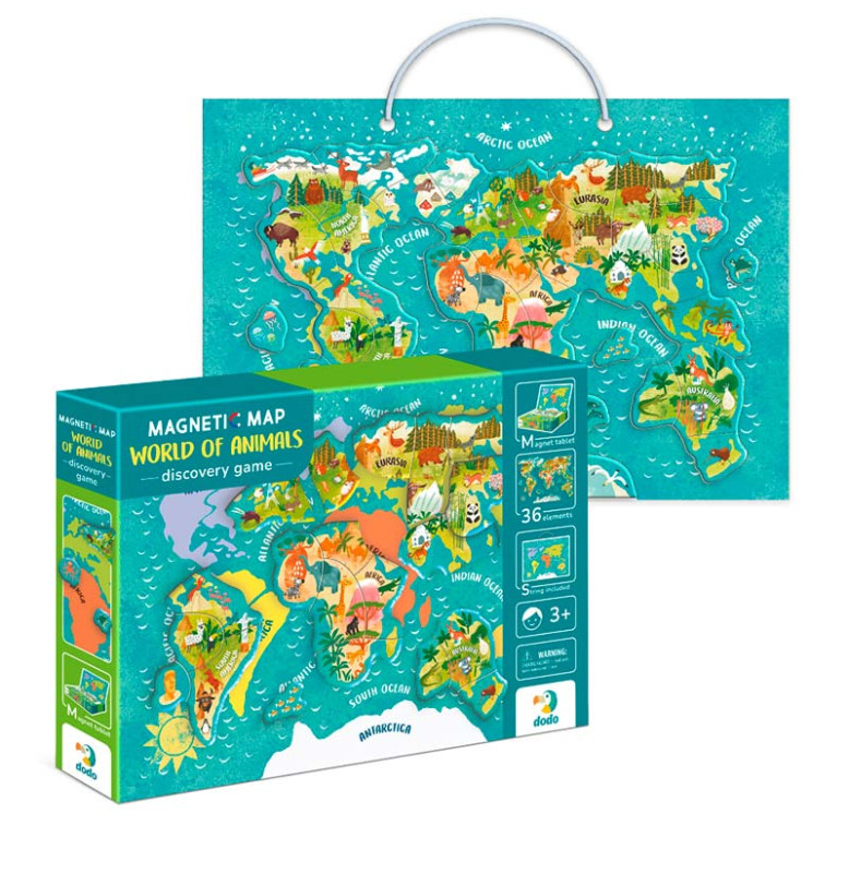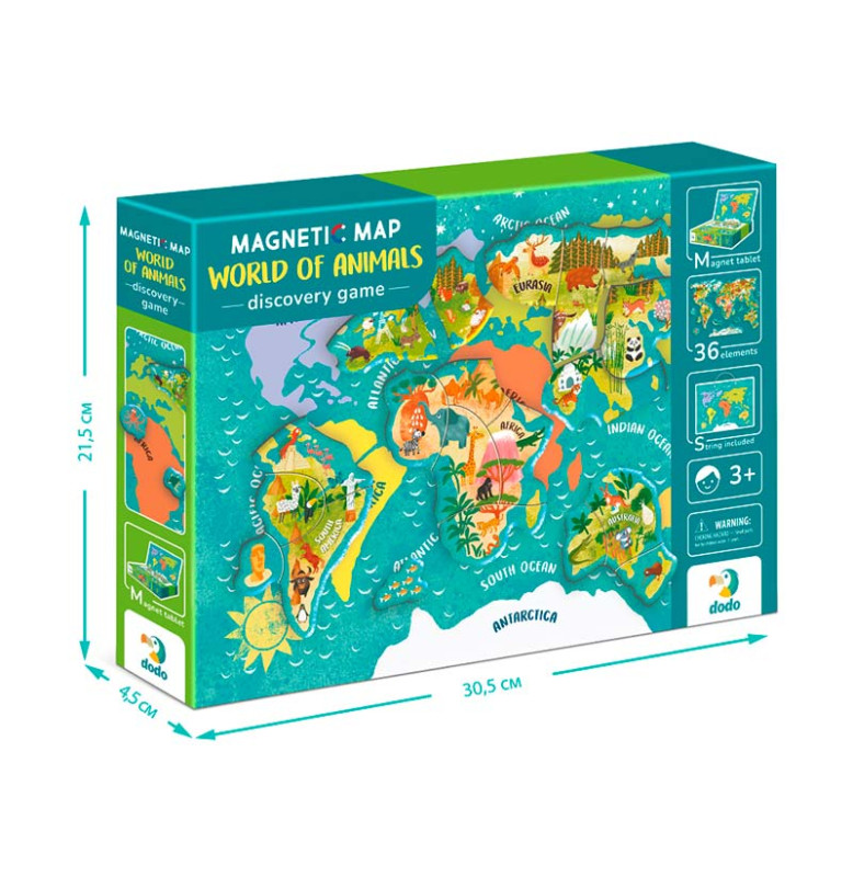 Розвиваюча гра Dodo "Магнітна мапа світу: Тварини" — чудовий спосіб для дитини познайомитися зі світом природи та різноманіттям тварин на різних континентах. У наборі є магнітна дошка з картою світу, 36 магнітних елементів із зображеннями тварин, що живуть у певних регіонах, а також шнурок для зручного зберігання на стіні дитячої.