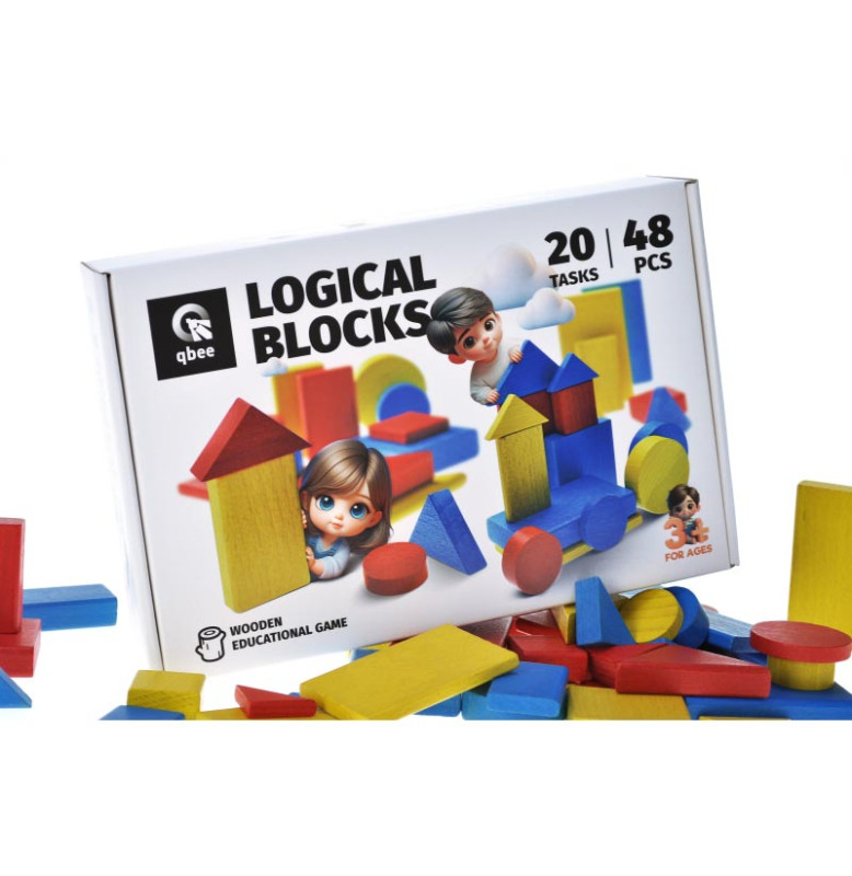 Развивающая игра qbee "Логические блоки Дьенеша" НУШ 48 деталей деревянная QB700-006