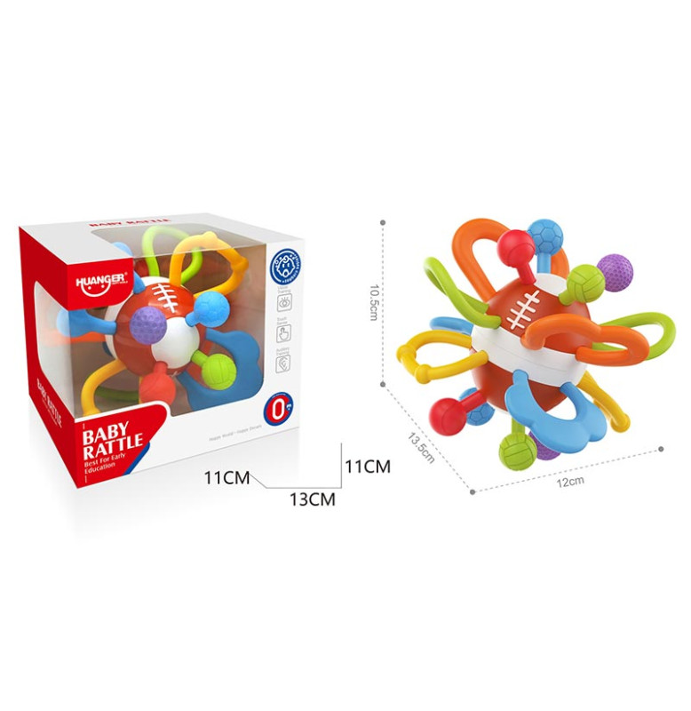 Яркий шар с гибкими петлями, одновременно служащими удобными ручками и нежными прорезывателями. Легкая и приятная на ощупь игрушка создана для первых упражнений по хватанию и исследованию мира руками.