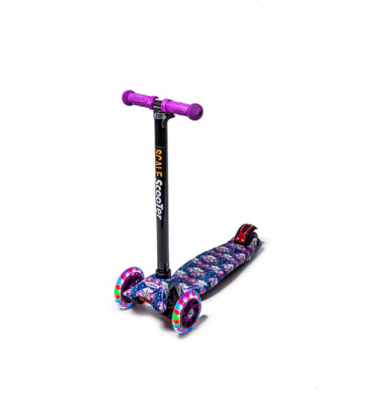 Триколісний самокат scooter з малюнками на платформі популярна модель у дітей і школярів. Це практичний дитячий самокат. Завдяки добре підібраним розмірам основних компонентів і можливості знімати ручку. Також, він дуже яскравий і привертає до себе підвищену увагу. Малюнок нанесений по всій поверхні платформи. Колеса світяться під час руху.