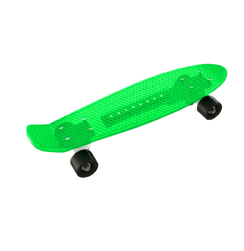Скейт салатовий - сучасний скейтборд салатового кольору, виконаний у класичному стилі, складається з пластикової прозорої дошки зі світловими ефектами і чотирьох поліуретанових коліс,